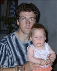 Stephan und Töchterchen Paulina (etwa 8 Monate) bei einer nächtlichen und sehr, sehr heißen Feier.