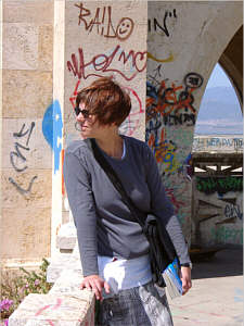 Nadja auf der Bastione S. Remy. Tausende von Tags haben Sprayer auf den Mauern und Wänden hinterlassen.