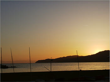 Endlich hat sich auch ein Sonnenuntergang ins Bild geschlichen - an der Marina von Villasimius.