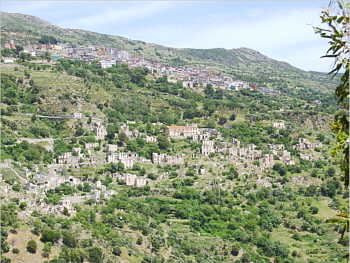 Gairo Vecchio (unten) wurde von einem Steinschlag zerstört. Oben am Hang ist Gairo St. Helena entstanden.