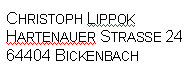 Christoph Lippok, Düsseldorf, Deutschland. Diese Website ist urheberrechtlich geschützt. Die private, nichtkommerzielle Nutzung ist erlaubt; dies betrifft insbesondere das Abspeichern und Ausdrucken für den eigenen Gebrauch. Kopien der Dateien dieser Website dürfen in elektronischer oder gedruckter Form weiterverbreitet werden, solange dies keinen kommerziellen Zwecken dient, die Dateien oder deren Inhalte dabei nicht verändert werden und die Quelle der Informationen deutlich angegeben wird. Disclaimer/HaftungsausschlussDiese Website ist mit größtmöglicher Sorgfalt erstellt worden. Da Fehler jedoch nicht ausgeschlossen werden können, erkläre ich, dass alle Angaben im Sinne der Produkthaftung ohne jedwede Garantie erfolgen und dass ich keinerlei Verantwortung und Haftung für Inhalte oder Auswirkungen dieser Website übernehme. Die Nutzung meiner Website geschieht auf eigene Gefahr. |